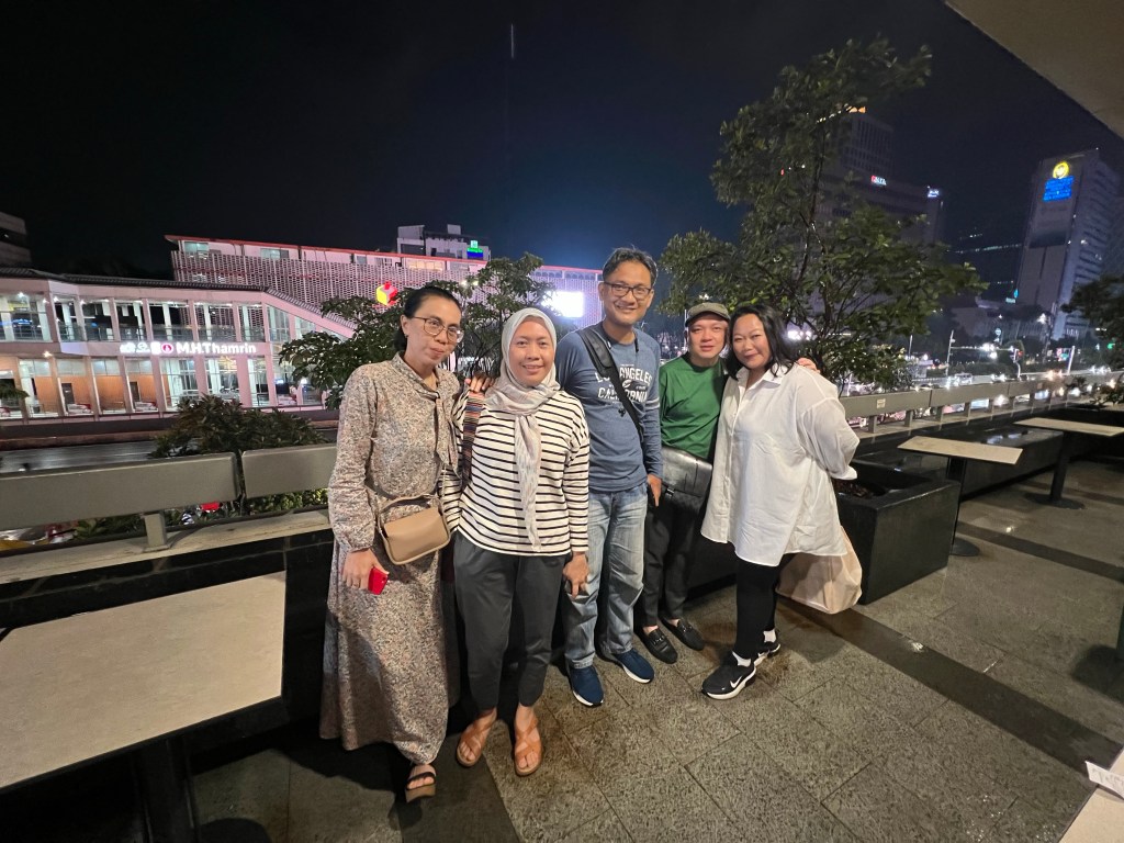 I had a great time on the train. My cousins , Guldaf and Ria were there as soon as I arrived. What surprised me was my other cousin, Arif, from my dad’s side came to surprise me at the station. Just happened that his work is closed by Gambir, the train station. I’ve never lived in Jakarta before. So I got excited to see Monas ( National Monument ) when we exited the station. And to see all the lights and colors, and the tall buildings along the Sudirman Street. There are so many changes from the last time I visited Jakarta. I felt like a little girl in a big city.